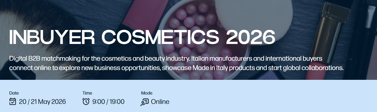 Vai alla pagina dedicata: https://inbuyer.promositalia.com/inbuyer/events-calendar/inbuyer-cosmetics-2026.kl